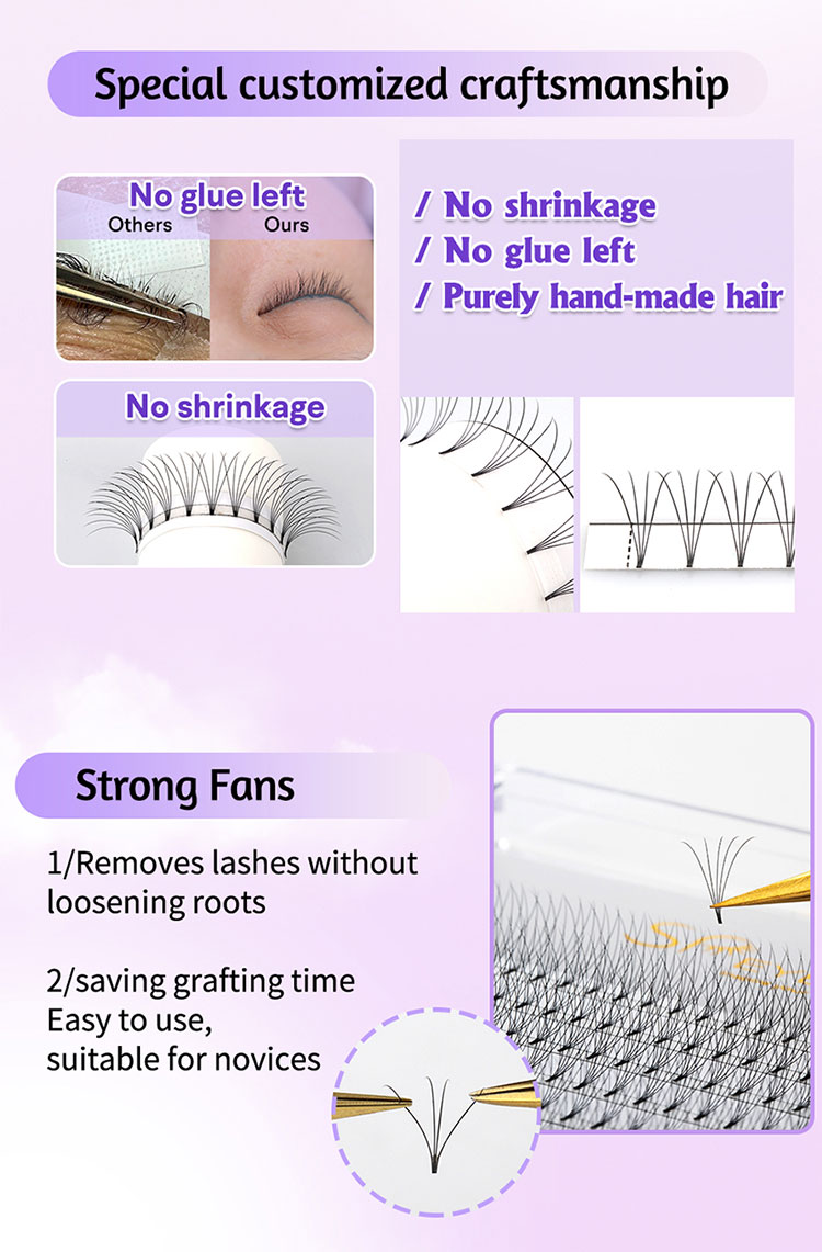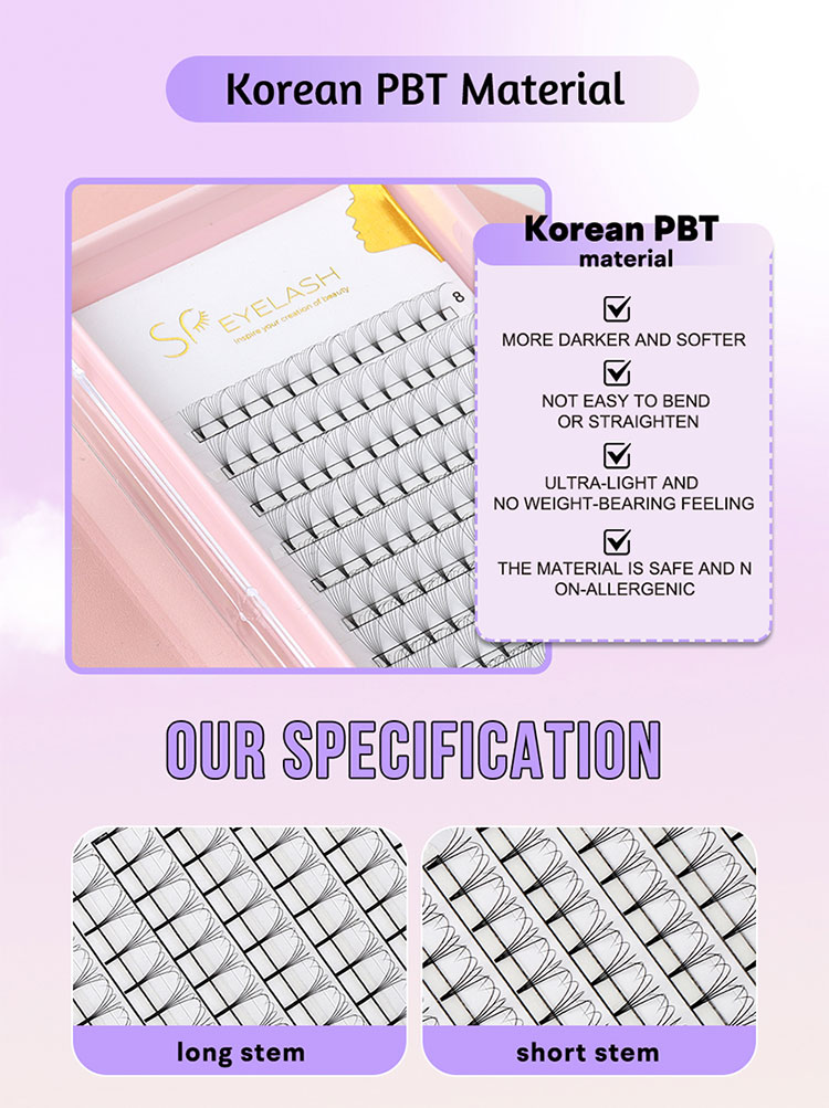 Всеки почитател в предварителното колекция фенове 9D е щателно ръчно изработен от Premium Korean PBT Silk, осигурявайки меко изживяване, перо-светлина, което е едновременно луксозно и удобно. Висококачественият материал осигурява естествено усещане, което прави тези мигли подходящи дори за най-чувствителните клиенти.