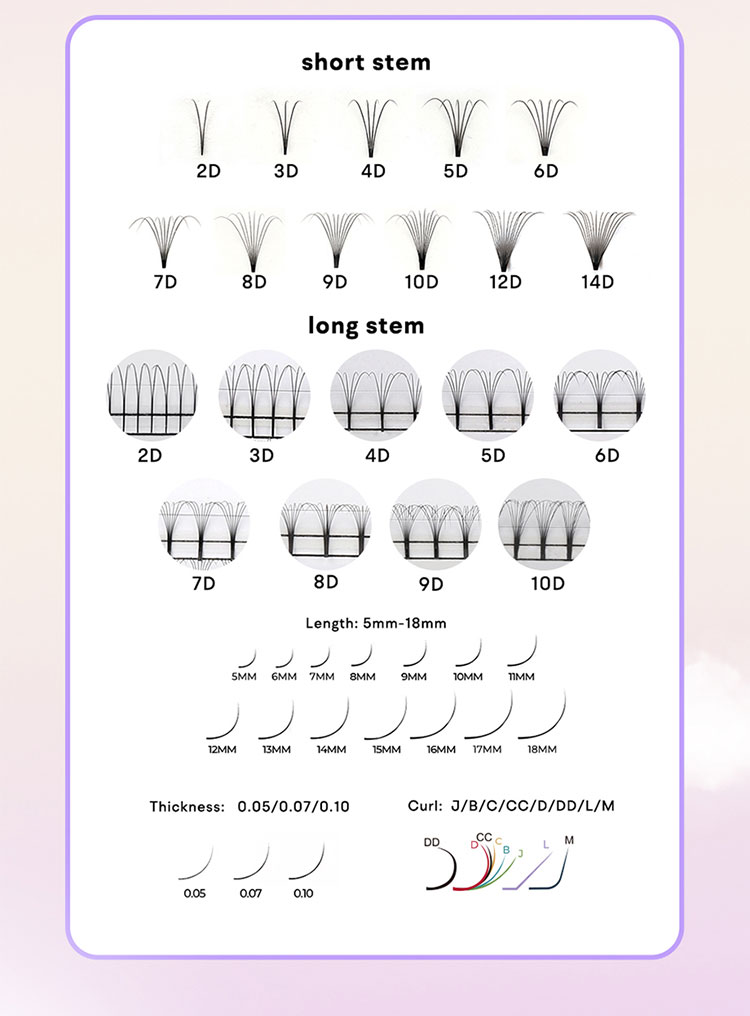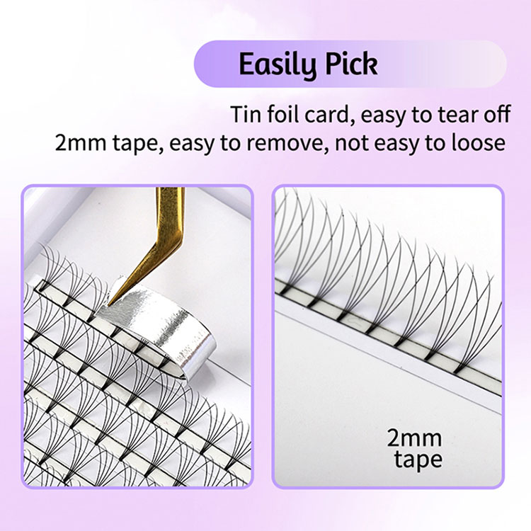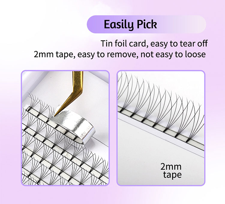 Проектирани с удобство за потребителя, пресдухите фенове 9D къси стъбла са идеални както за начинаещи, така и за опитни техници за Lash. Те ви позволяват незабавно да подобрите всеки набор от ресни с обем, осигурявайки гладък и лесен процес на приложение. А лесната за зареждане лента фолио позволява бързо и безпроблемно приложение, което прави работния ви процес по-гладък и по-ефективен.