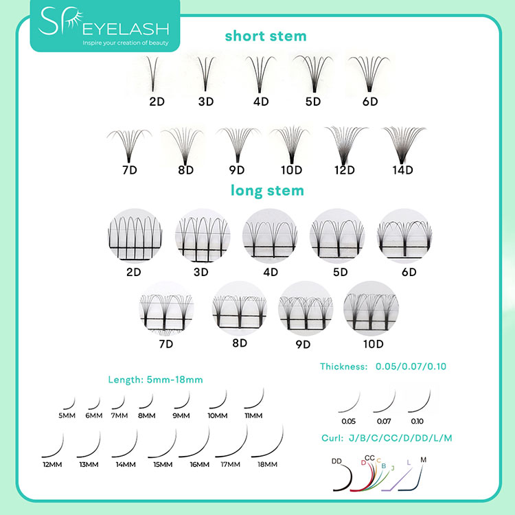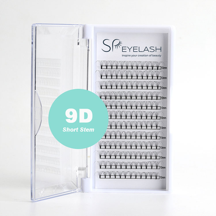 Посредствените фенове 9D къси стъбла от мигли от SP са проектирани да създават без усилие набори от Mega Polume, които подобряват красотата на очите на вашия клиент, без да добавят допълнителна тежест. Тези фенове правят постигането на обемно изглежда невероятно лесно и ефективно.